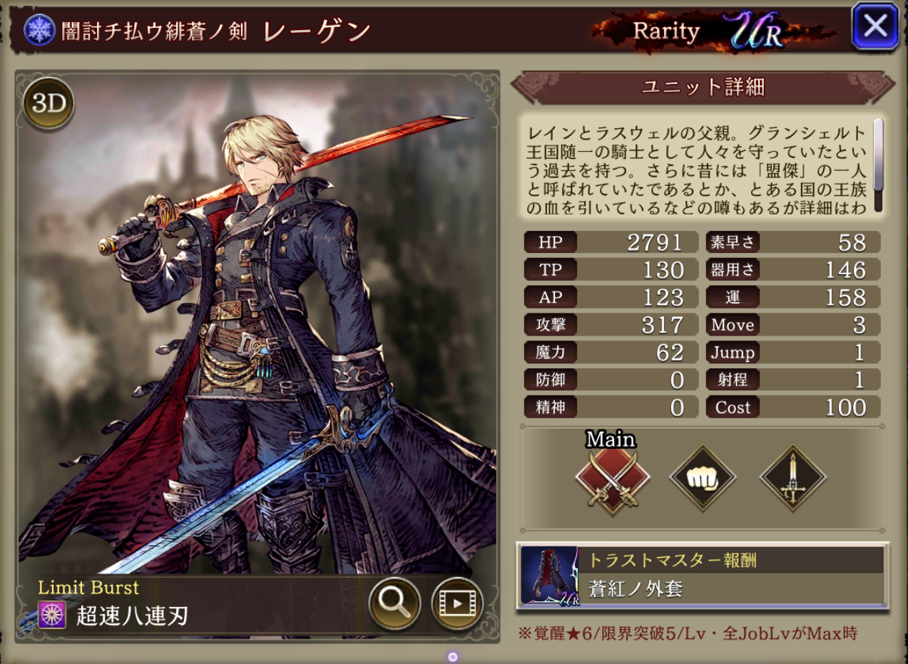 | GOOD: 耐久◎ 高いHP、斬撃・打撃・魔法耐性。ガッツ持ちで、HP50%以下自動回復の性能も持つ。さらにエレメントチェイン耐性も付けられる。 火力▲ 専用武器と合わせて防御&斬撃貫通率を60も盛れる。プロテス解除やガッツ解除技も搭載。 高いリアクション阻止率(バフ込み) モンクで必中技が使える、チャクラで範囲回復ができちゃう LBはボス相手に有効な3連攻撃&斬撃耐性ダウン 声がカッコいい(スネ〇ク) BAD: バリア破壊がないので思うようにダメージが出ないことも 命中はしっかり盛らないと不安なレベル 素早さ▲ 若干遅め 射程が短い&高低差に弱いアビリティ リアクションアビリティが残念 |