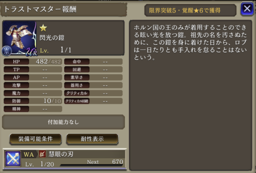 ![]() | 【EX】 攻撃+30% クリティカル率+15 防御貫通率+40 | 12 | 4 |