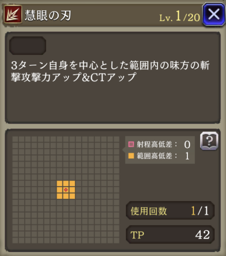 心眼 ![]() | 侍 被ダメージ時に20%の確率で3ターン自身の回避率+10(3回まで重複可) |
