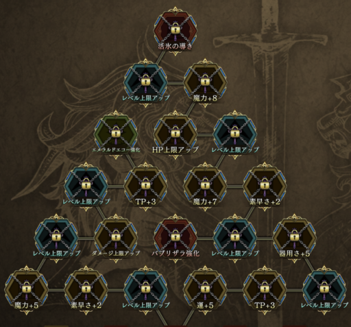 | JobLv22 エメラルドエコー強化 | 素早さ+12%&アビリティ発動時間短縮200追加 |