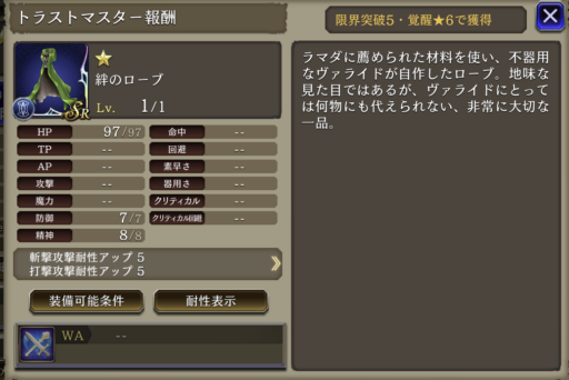 | TP上限+45%、AP獲得+30%、範囲耐性+20 |