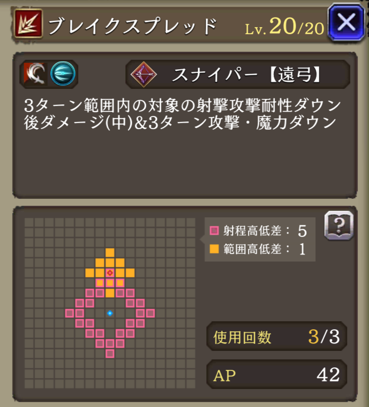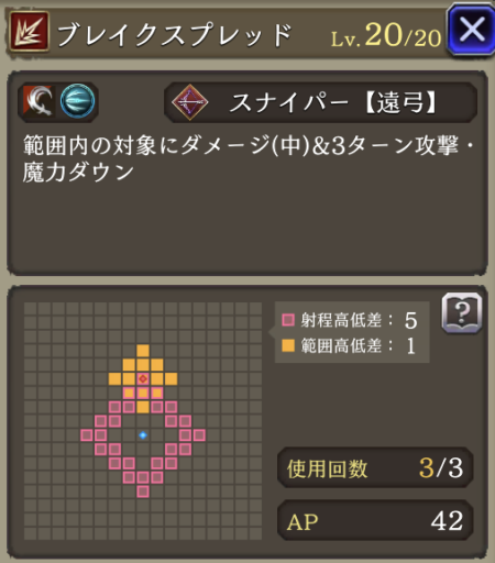 | JobLv25 ブレイクスプレッド習得 | 範囲内の対象にダメージ(中)&3ターン攻撃・魔力ダウン |