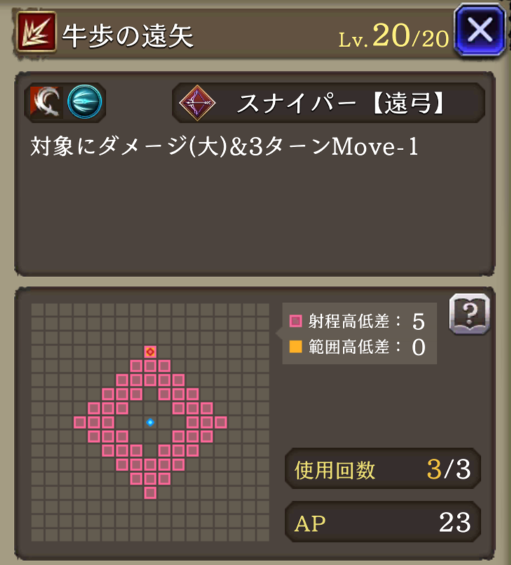 | JobLv22 牛歩の矢強化 | 牛歩の遠矢に強化、射程+1 |
