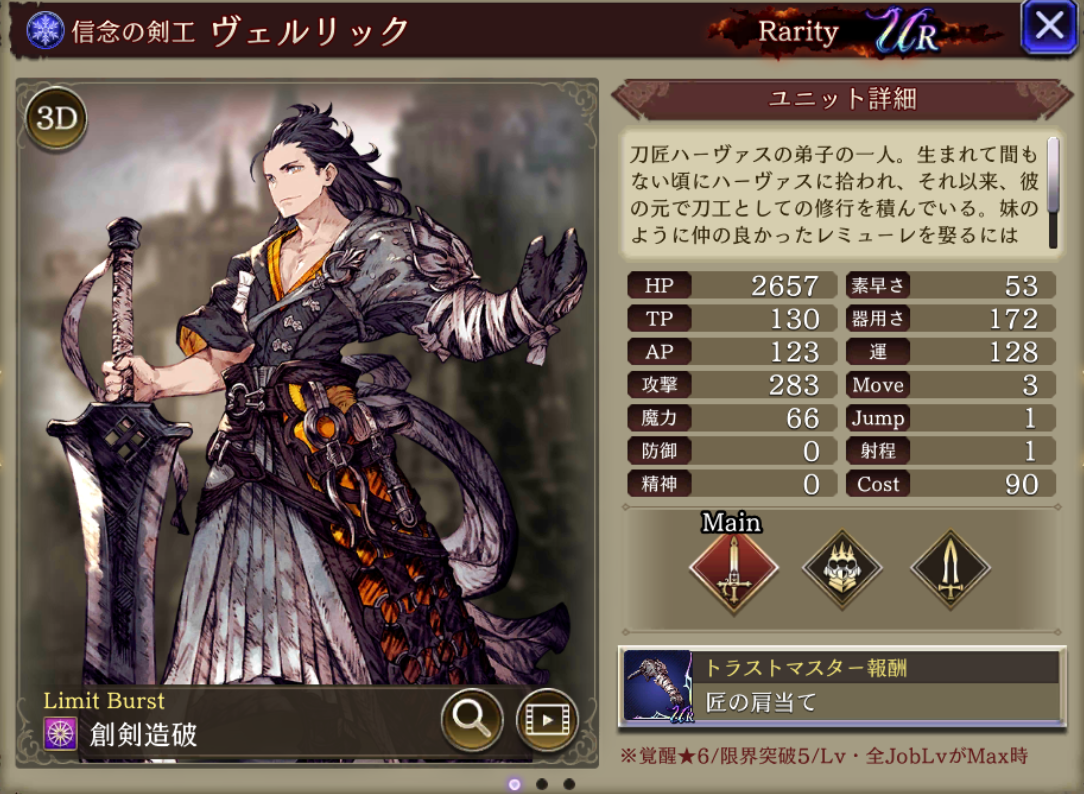 | ⇩MA3強化⇩ 味方の氷属性ユニットのHP上限+10%・氷属性アビリティ攻撃+15 自身の防御貫通率+40、斬撃耐性貫通率+25・治癒力+15 |