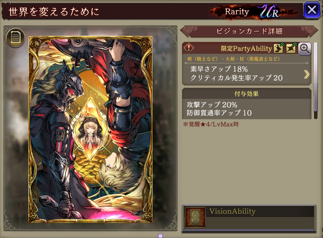 ![]() | 常闇のヴェリアス | 334 | UR | 100 | 闇 | 大剣 |