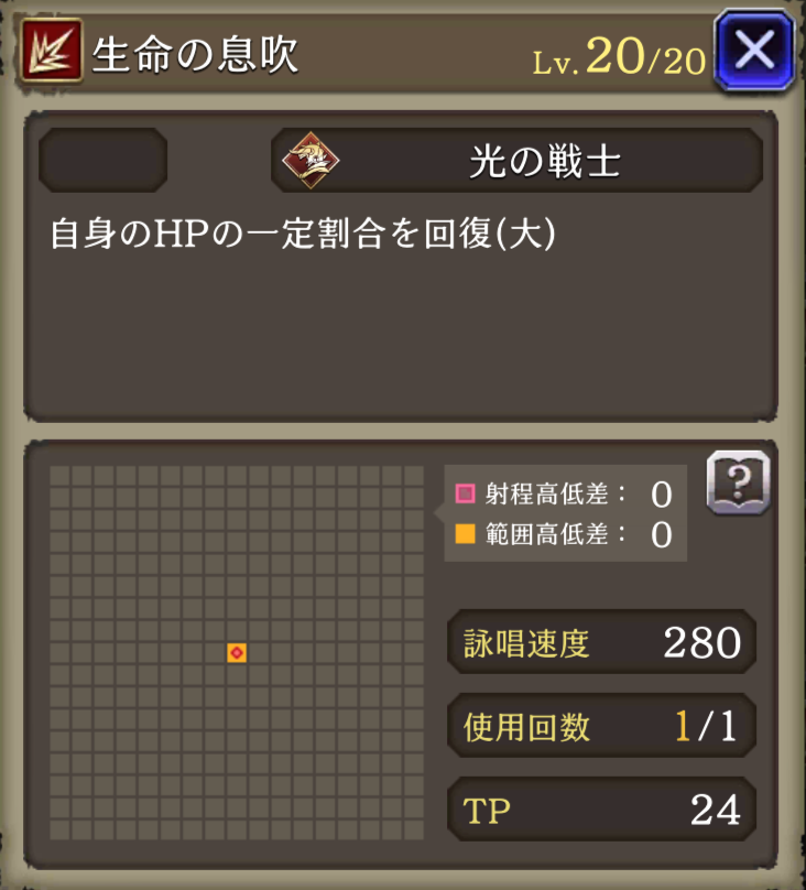 | JobLv22 生命の息吹強化 | 使用回数+1 詠唱なしに |