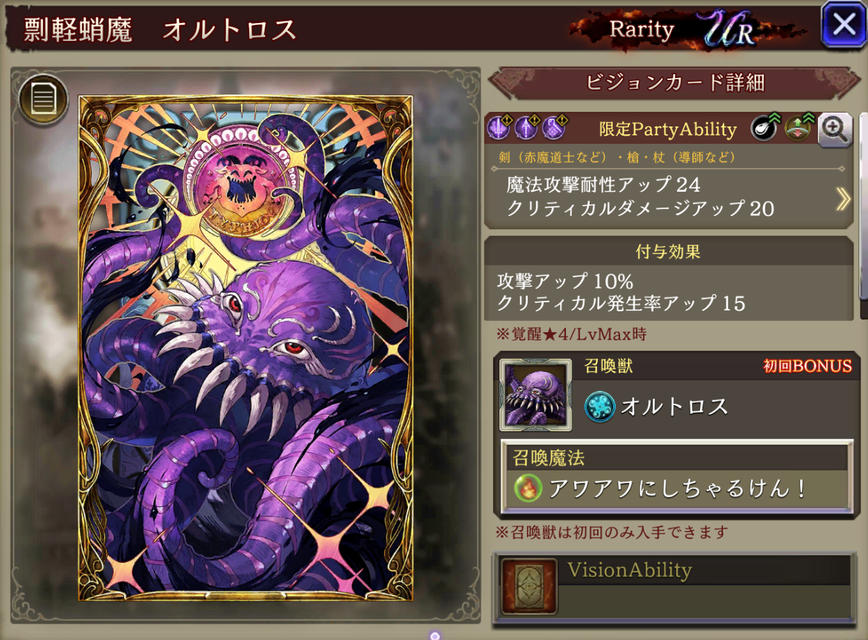 ![]() | ファリス | 262 | UR | 100 | 水 | 剣(赤) |