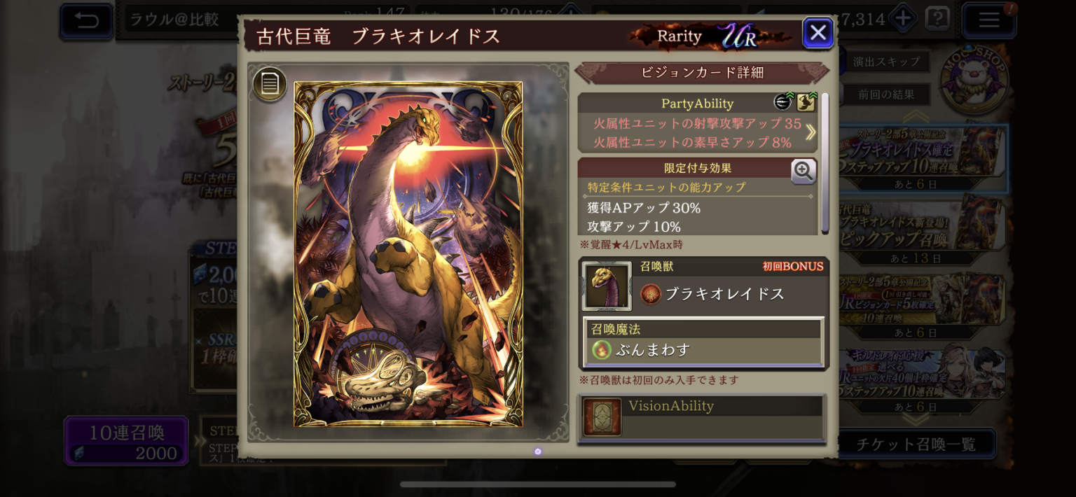 【FFBE幻影戦争】古代巨竜ブラキオレイドスの凸別ステータス/アビリティ