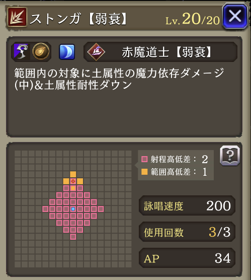 | 「ストンガ【弱衰】」 アビリティ発動時間なし 範囲耐性貫通+30追加 |