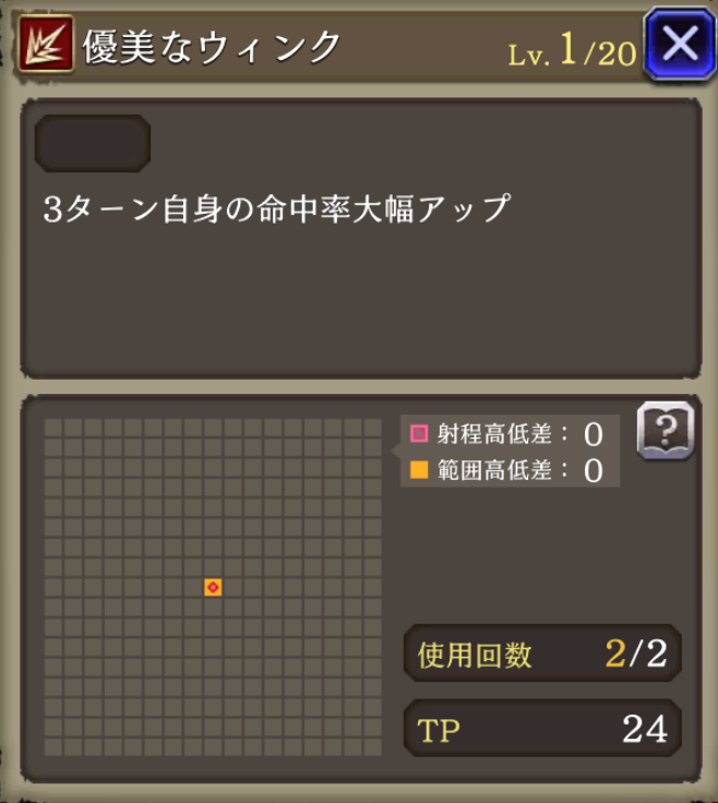 ![]() 3ターン自身の命中+60 | 434 |