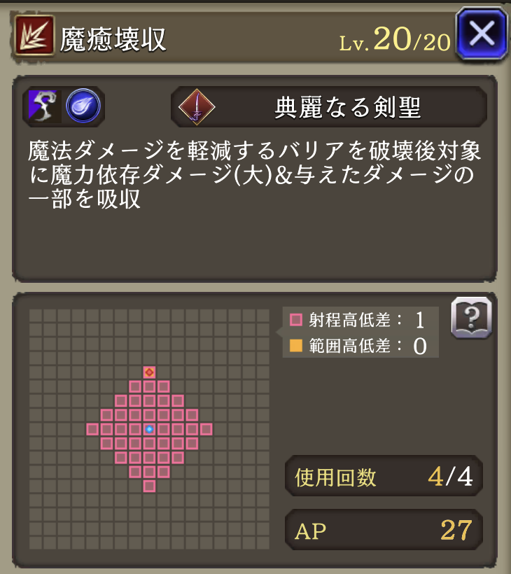 魔動転換 ![]() | ルーンナイト 魔法攻撃による被ダメージ時に30%の確率で自身のAP回復 |