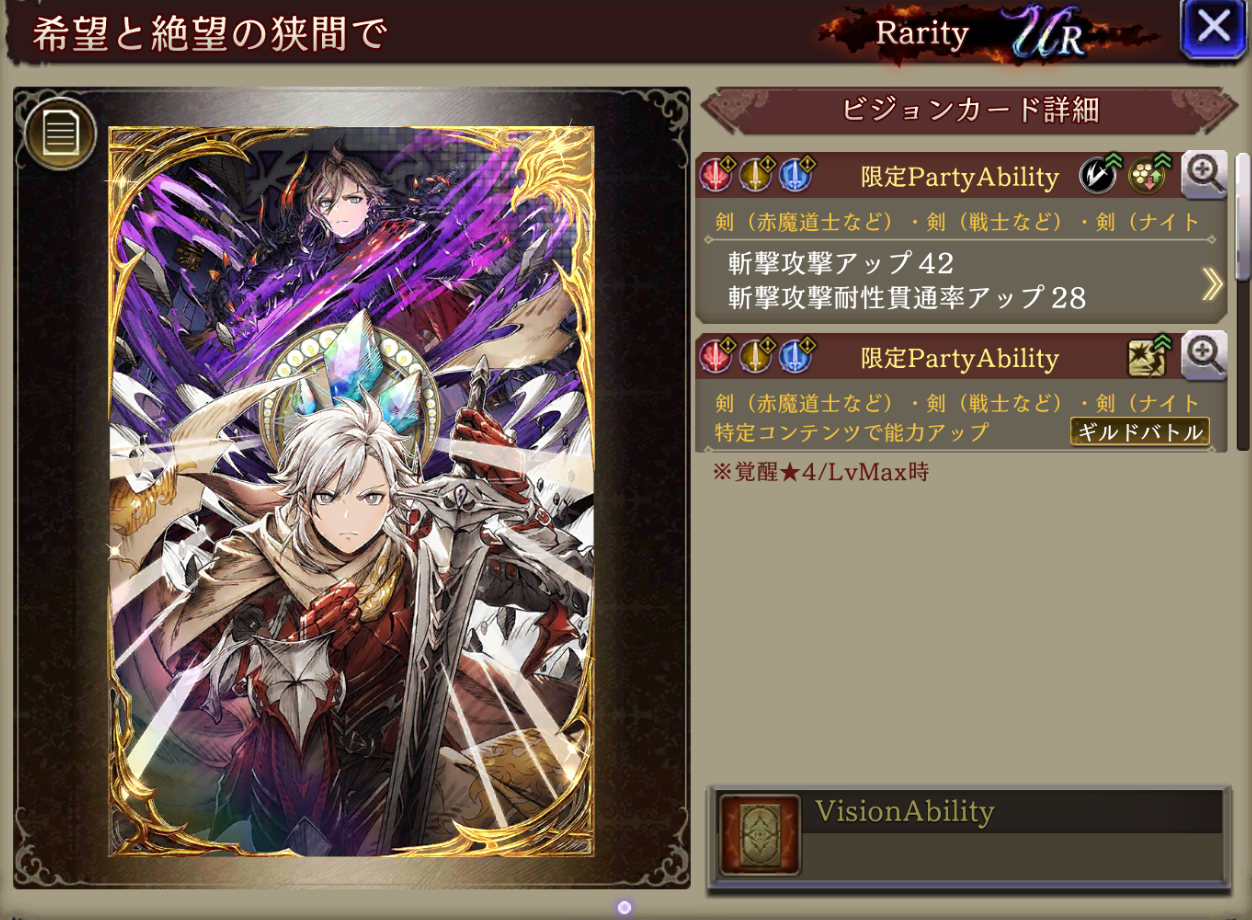 | 良い点 | 剣3種のみ該当で斬撃攻撃と斬撃耐性貫通を上げられる 単体耐性もありギルドバトルではクリティカル回避も上げられる |