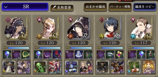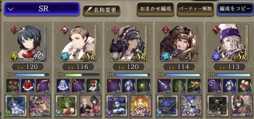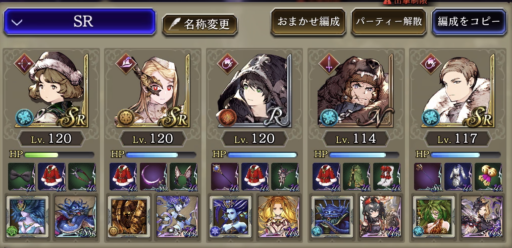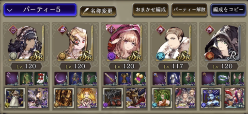 ![]() 右の風パにはサージェス、真ん中・左は魔法パで倒します。 「やられる前にやる」、火力のみ考えた編成 |