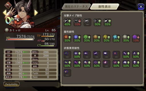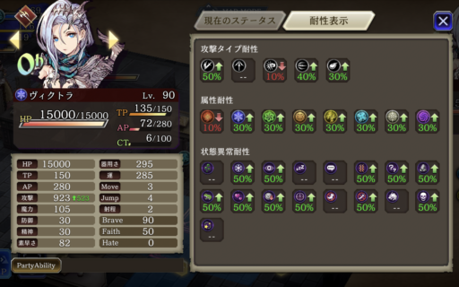 回避率は「召喚獣テトラ」「VCシヴァ」と「VC伝わらない気持ち」、「防具サンタ服」「キトンのトラマス」で盛っています。