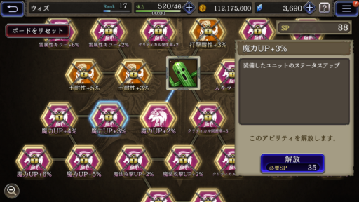 回避ユニットを手に入れたらまず集めたい、運21%UPのパーティーアビリティ。運は命中上げにも〇