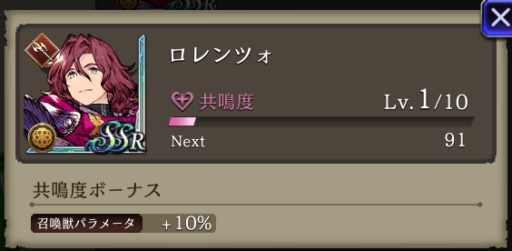 召喚獣には共鳴度というLVがあり、LV1からLV10まで1上がるごとにステータス加算率が10%ずつ増えます。