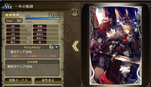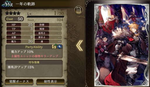 1周年記念で配布のビジョンカード。魔法パに断然おすすめのパーティアビリティ!魔力30%UPは強力◎