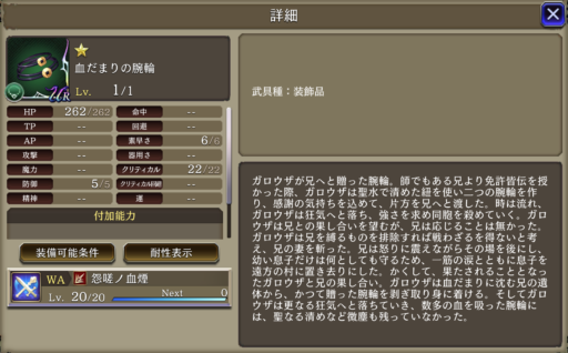 魔力+20%、命中+20、消費AP20%ダウン 辻斬リ尖傷 強化 弱体抵抗率50ダウン リアクション発動率100ダウン | 魔法系 アタッカー |