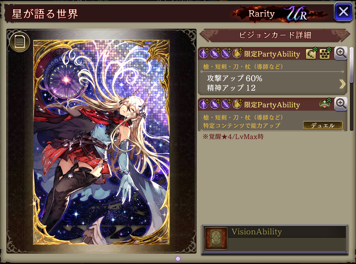 ![]() | ヴィストラール | 18 | SSR | 50 | 光 | 短剣 |