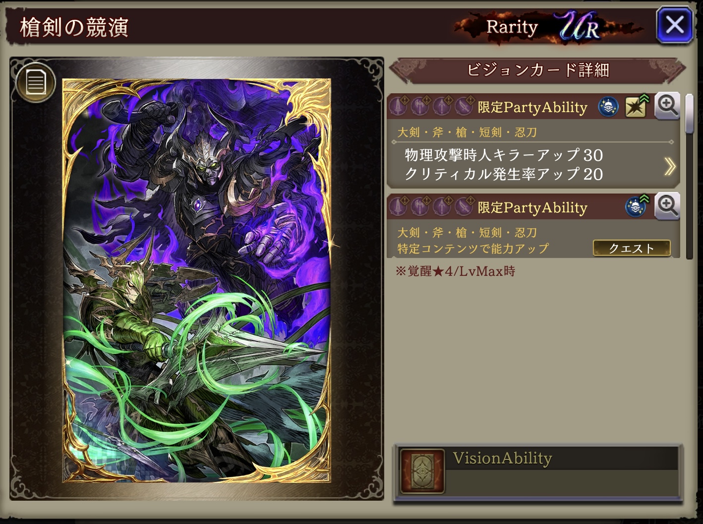 | 良い点 | 高い物理攻撃時人キラー&クリティカル発生率でダメージに寄与 付与効果のダメージ上限アップがPvP・スコア系コンテンツで有用 |