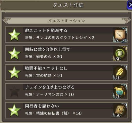 | サンゴの剣のレシピ | アーリマンの涙 | 愉楽の心 | 雷の結晶 | 精錬の秘伝書(剣) | |