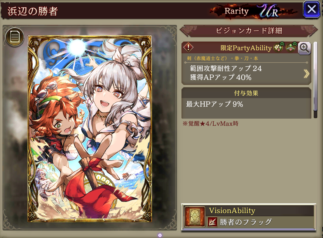 ![]() | グラセラ(水着) | 270 | UR | 100 | 水 | 剣(赤) |