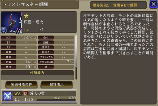 ![]() | 斬撃攻撃力+40 防御貫通+20 | 2 | |
