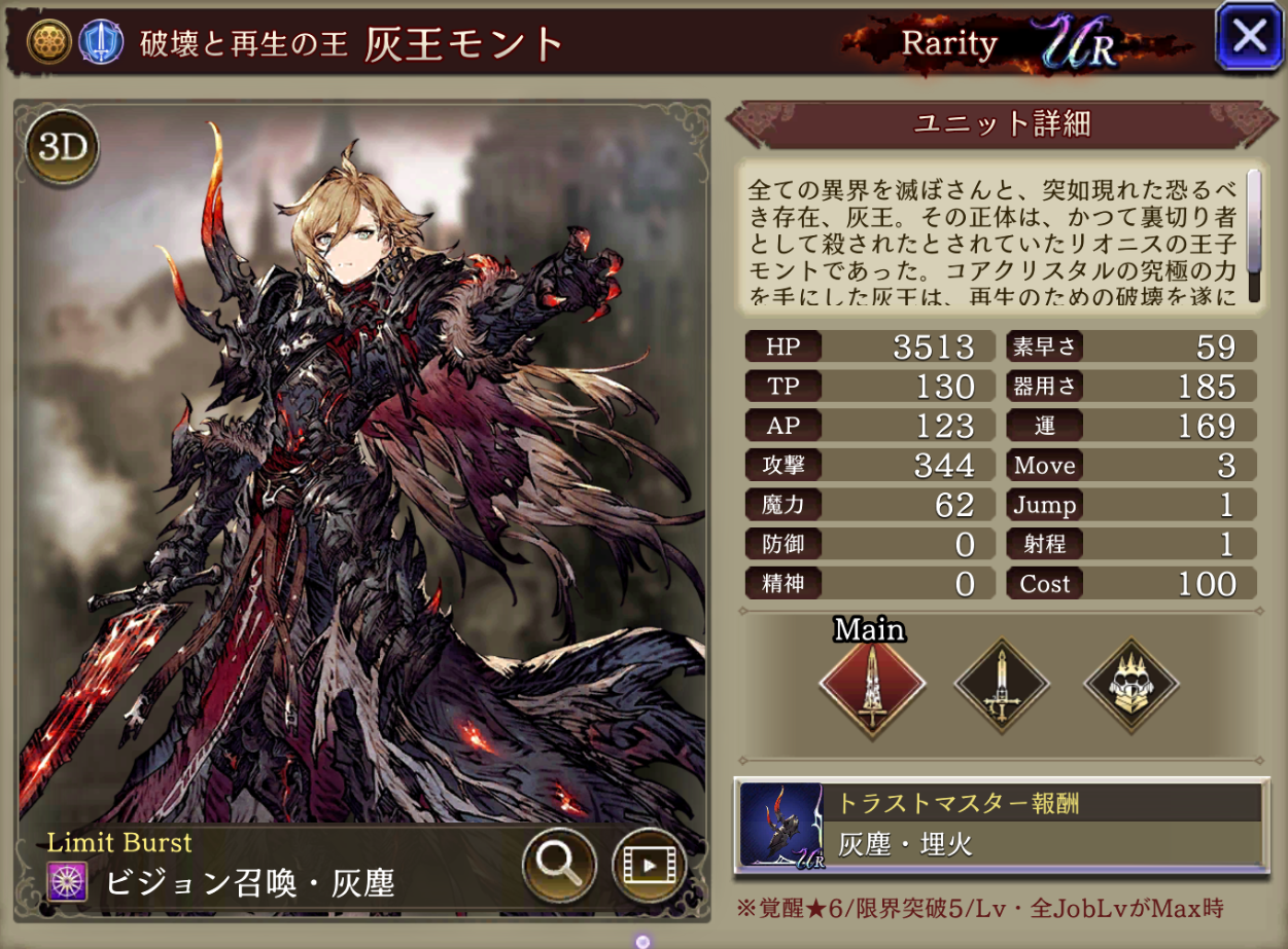 | ⇩MA2強化⇩ 味方の土属性ユニットのHP上限+10%・土属性アビリティ攻撃+15 自身の斬撃攻撃耐性貫通率+20・範囲攻撃耐性+10・追加効果「AP自動回復効果中なら沈黙発動率アップ」を付与・魔法被ダメ軽減15%・リアクション阻止率+20・バトル開始時50%魔法バリア(4回) |