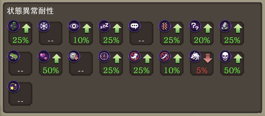 武具(眠りの剣) | 0 | 1 | 単体 | 睡眠 | 0.15 | 0 | 通常攻撃で付与 | 185 | 剣装備可能 | ||