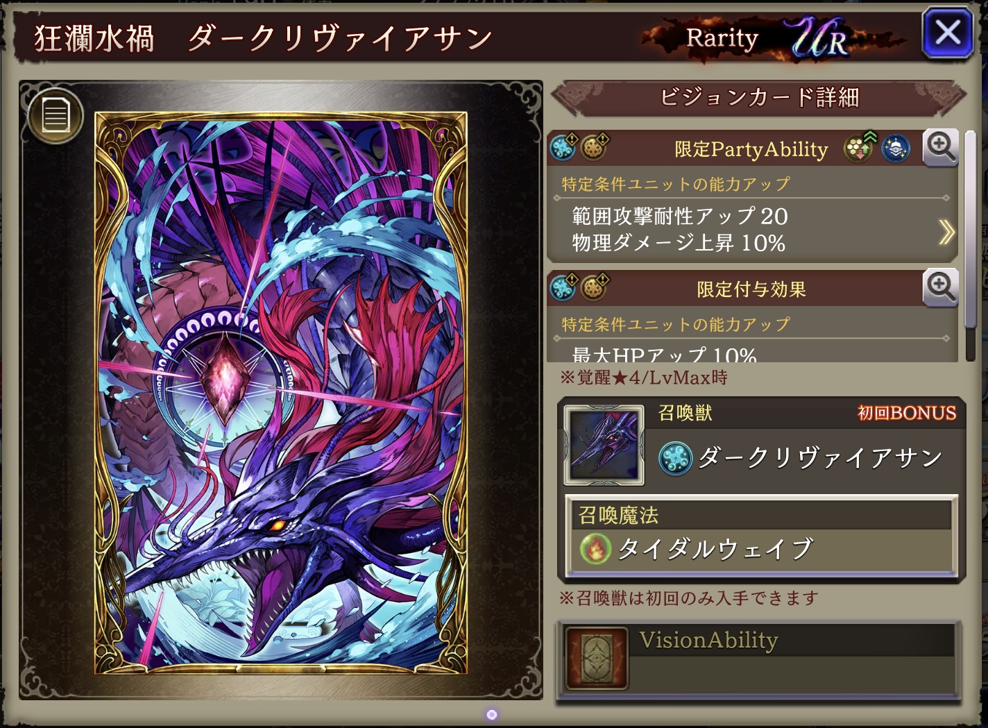 【FFBE幻影戦争】狂瀾水禍 ダークリヴァイアサン の凸別ステータス/アビリティ