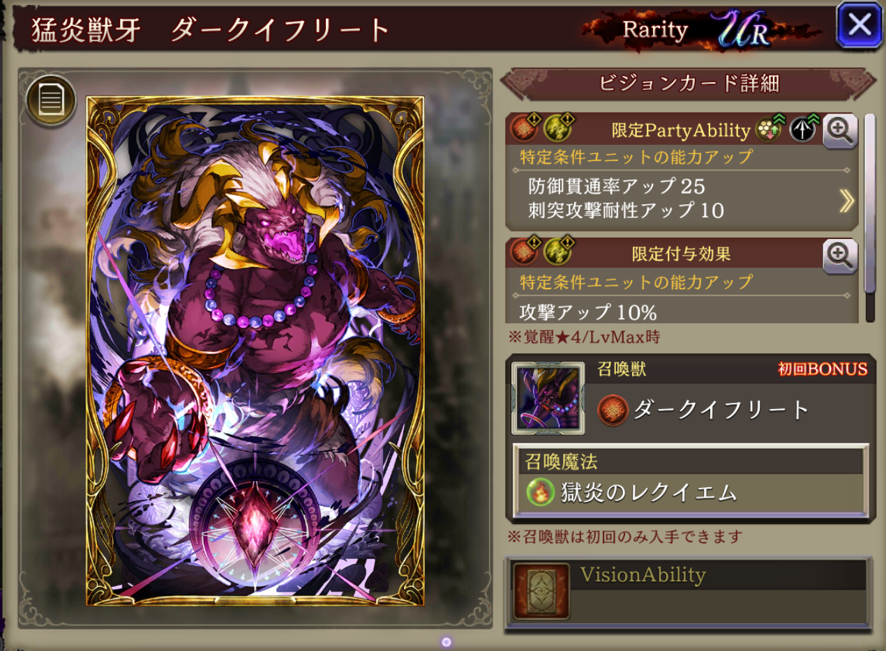 【FFBE幻影戦争】猛炎獣牙ダークイフリートの凸別ステータス/アビリティ
