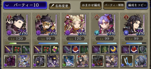 敵のHPが高く、毒も効くため、回避しつつ毒で倒すパーティーです。