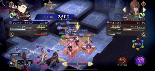 【2ターン目前に出てきた集団にWシュテルの範囲攻撃コンボで大ダメージを与えます。