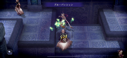 【2ターン目】槍術士の「ブルーパッション」でガーブルのAPを枯渇させ、無力化します。