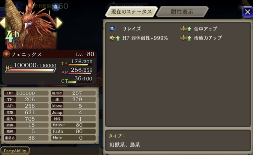 スロウが効きます。戦闘開始時リレイズが付与されています。