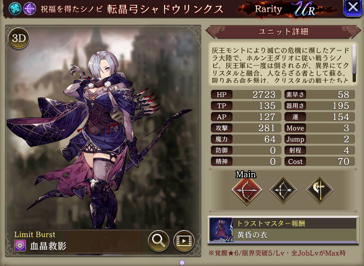 | ⇩MA3強化⇩ 味方の水属性ユニットのHP上限+10%・水属性アビリティ攻撃+15 自身の射撃貫通+15、HP上限+5%・範囲貫通+20・消費AP20%ダウン |
