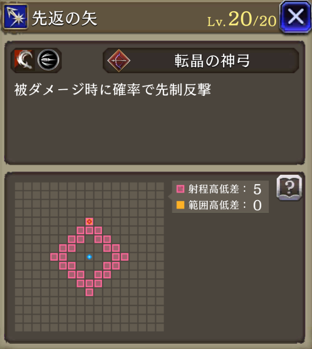 先返の矢 ![]() | 転晶の射手 被ダメージ時に30%の確率で先制反撃 |