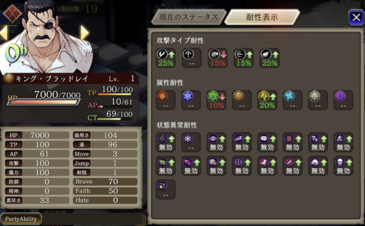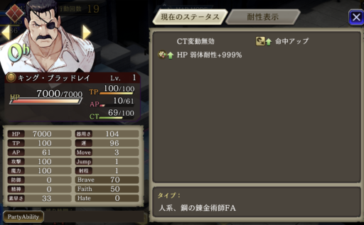 上のパーティは闇の斬撃アビリティで『チェイン』と『エレメントチェイン』を同時に狙う編成です。チェインが切れないように遅延役のジザの『時間を盗む』を使います。(ヴィネラも使えます)