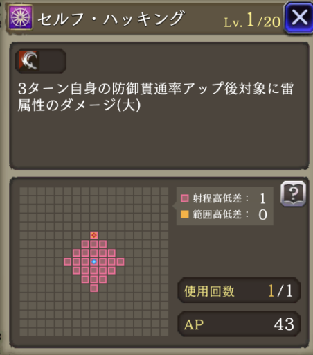 | ハッキング強化 | ハッキングの射程強化&確率でスタン付与 |