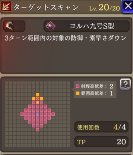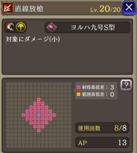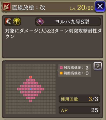 | JobLv25 直線放槍:改習得 | 対象にダメージ(大)&3ターン刺突耐性ダウン |