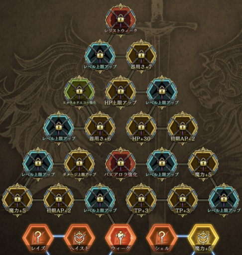 | JobLv19 バエアロラ強化 | 無詠唱化、3ターン範囲内の味方の防御+15&風・土耐性+25 |