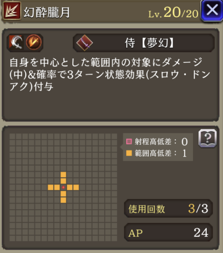 | JobLv19 朧月強化 | 幻酔朧月に強化 十字範囲+1、効果高低差+1に強化、ドンアク付与追加 |