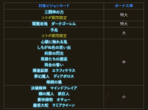 | ユニット・召喚獣・ビジョンカード比較 | ||