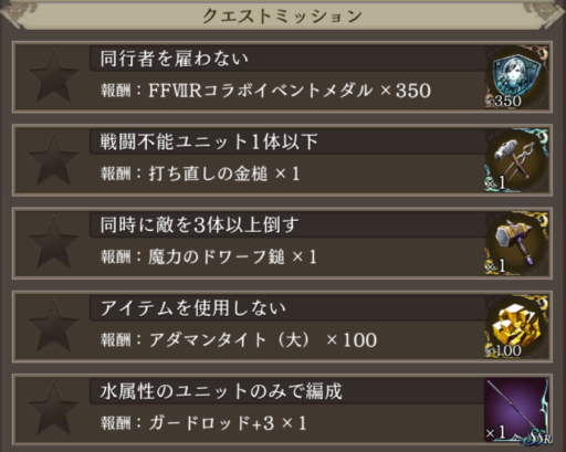 | イベントメダル | ガードロッドのレシピ | アーリマンの涙 | 愉楽の心 | 水の結晶 | 精錬の秘伝書(杖) | |