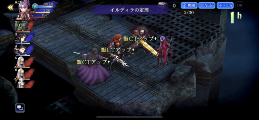 強化されたイルディラパーティーでもクリアに大変時間がかかります(8分前後)。長期戦になるので幻音の鈴(活性孔を使うため)装備がおすすめです。それでも味方はいつも1人は倒れます。