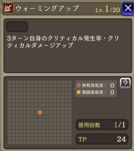 | JobLv22 クリティカルパス強化 | スフィアシュートに強化。消費AP14➜10へダウン |
