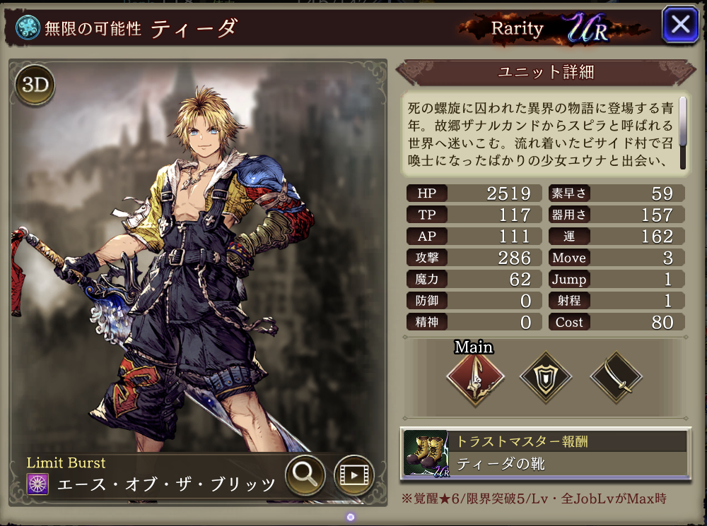 | 味方の水属性ユニットのHP上限+10%・水属性アビリティ攻撃+15、自身の防御貫通率+20 |