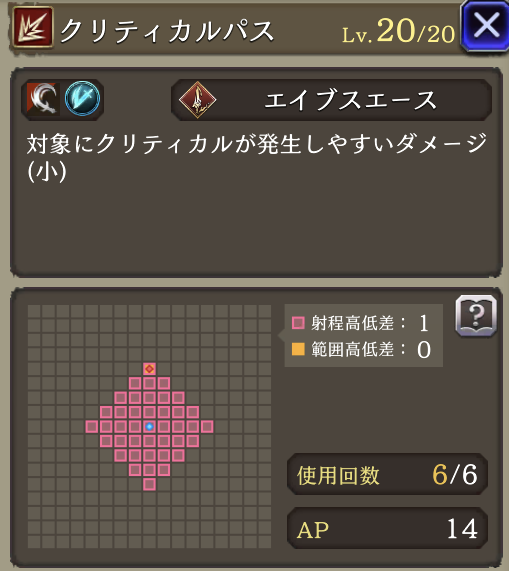 ![]() | 【EX】クリティカルパス強化 消費APダウン(14→10) クリティカル確定に | 9 | 2 |
