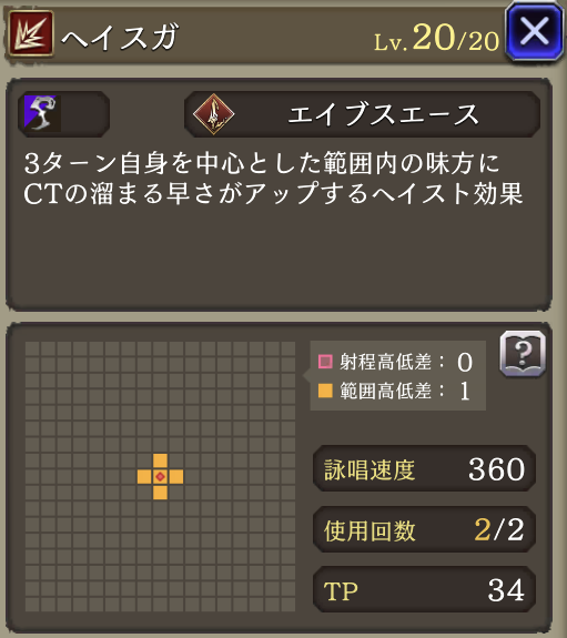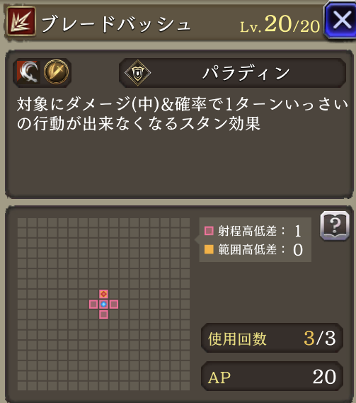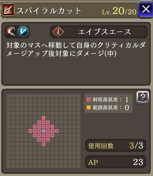 | JobLv22 クリティカルパス強化 | スフィアシュートに強化。消費AP14➜10へダウン |