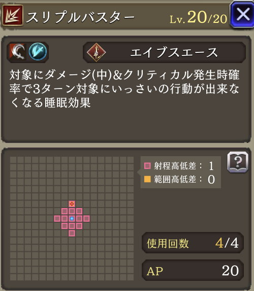 ![]() | 【EX】 消費APダウン(24→20) ダメージ(中→大) | 8 | 1 |